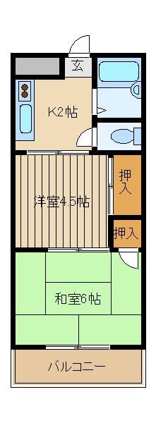 | 築年月 | 1989年5月 | 間取り | 2K( 洋室4.5畳/和室6畳/K3畳 ) | 専有面積 | 30m2 |