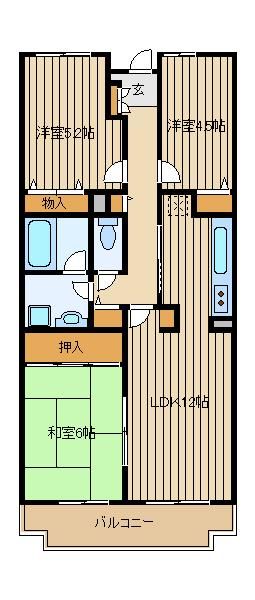 | 築年月 | 1993年4月 | 間取り | 3LDK( 洋室4.5畳/洋室5.2畳/和室6畳/LDK12畳 ) | 専有面積 | 64.26m2 |