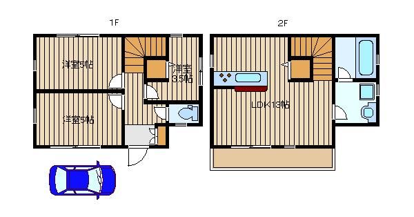 新築築の2階建ての一戸建てで、お部屋は2階建ての2階部分です。