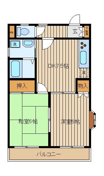 | 築年月 | 1993年10月 | 間取り | 2DK( 洋室6畳/和室6畳/DK7.5畳 ) | 専有面積 | 45m2 |